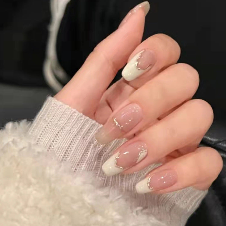 Modern nude nails with golden accents for a subtle, luxurious glow.